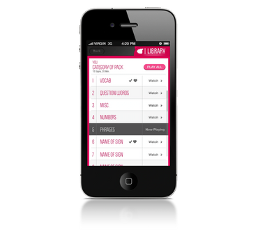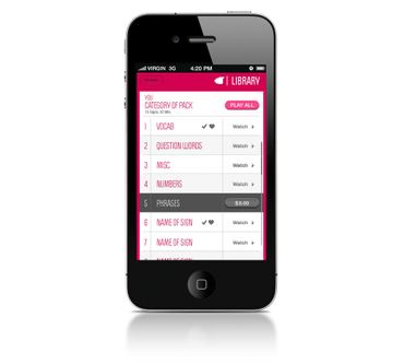 Features include several useful tools, new lesson new packs available for in-app purchase, and a spell feature that shows how to spell any word in signs.